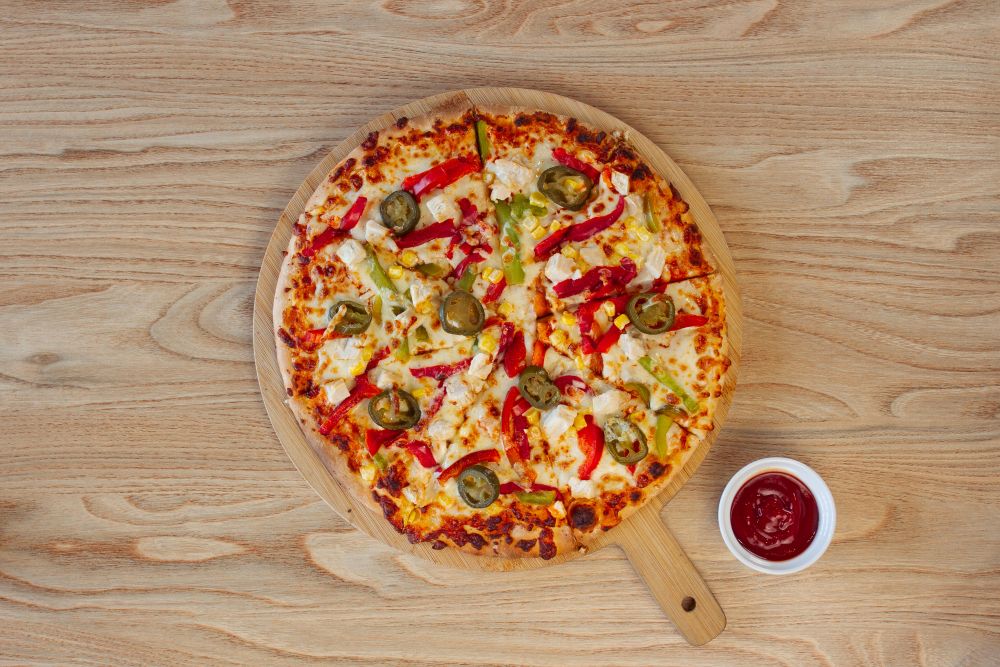 Hot n’ Spicy Pizza – Cheese with Chicken, Peppers & Jalapeños